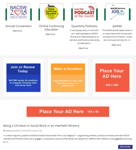 Leaderboard Ad Placement The leaderboard ad will be located just above the blog posts on the home page of NACSW as seen here: Organization Name * Contact Person's First Name * Contact Person's Last Name * E-mail * Phone Number Please enter the URL address you want your ad linked to * When do you want the ad to start? * Month MonthJanFebMarAprMayJunJulAugSepOctNovDec Day Day12345678910111213141516171819202122232425262728293031 Year Year202520262027 Please upload your ad image * The ad image dimensions must be 728 pixels wide and 90 pixels high.Files must be less than 800 KB.Allowed file types: gif jpg jpeg png. Choose the number of months you want the ad to run * 1 month: Leaderboard Ad [$200.00] 2 months: Leaderboard Ad [$300.00] 3 months: Leaderboard Ad [$350.00] Leave this field blank